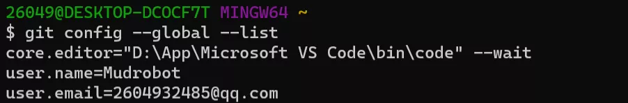 $ git config --global user.email 2604932485@qq.com #邮箱