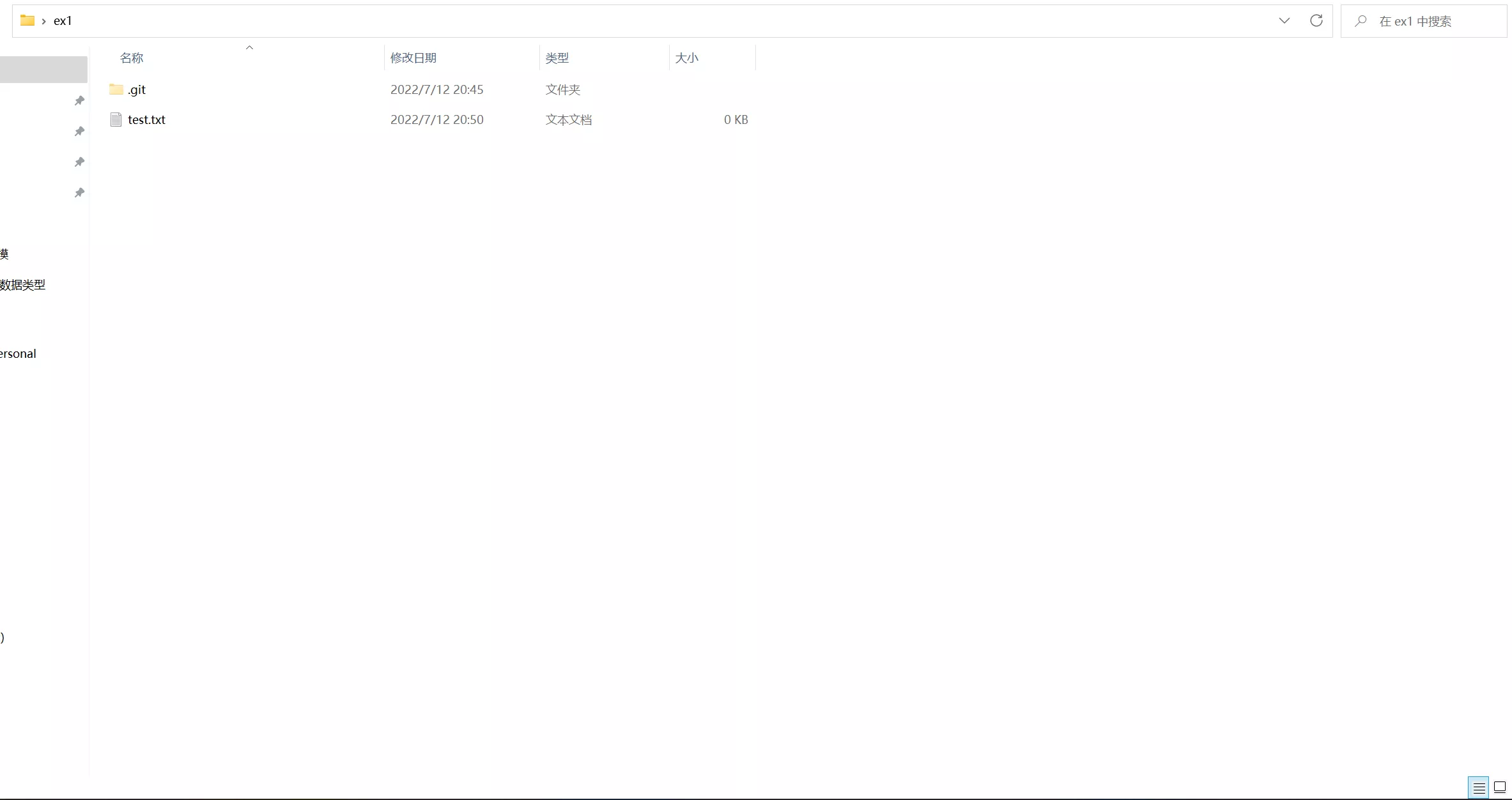 可以发现git init后该文件夹中多出来一个隐藏文件夹,然后我们在该文件夹下新建一个test.txt文件。